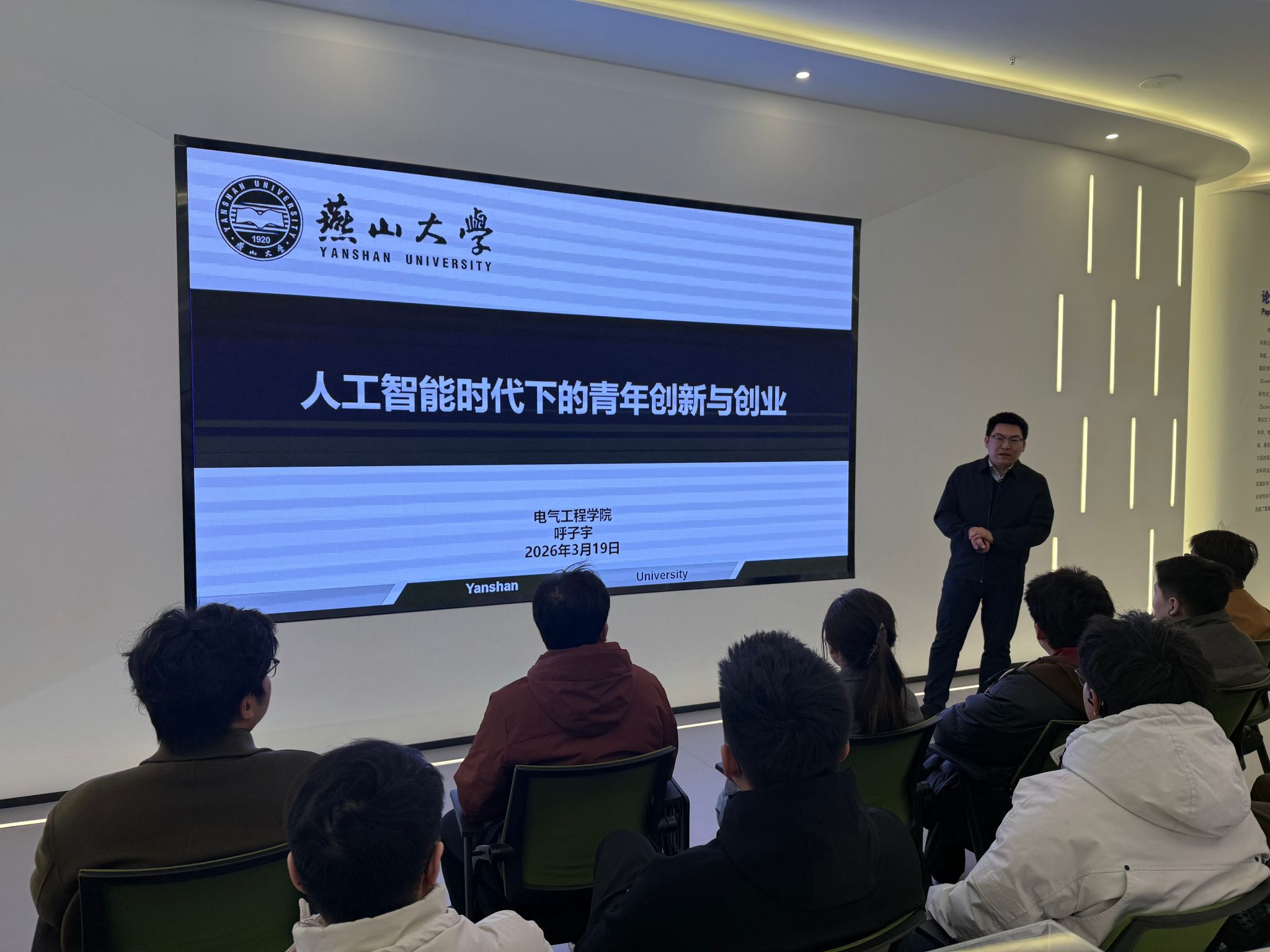 为进一步提升大学生创新创业能力,拓展人工智能领域发展视野,3月19日,燕山大学创客学院创客训练营专题讲座在开发区科技大厦“科技成果超市”成功举办。本次讲座特邀电气工程学院副教授、博士生导师、自动化系副主任呼子宇老师担任主讲,创客学院及创业协会学生代表参加活动。